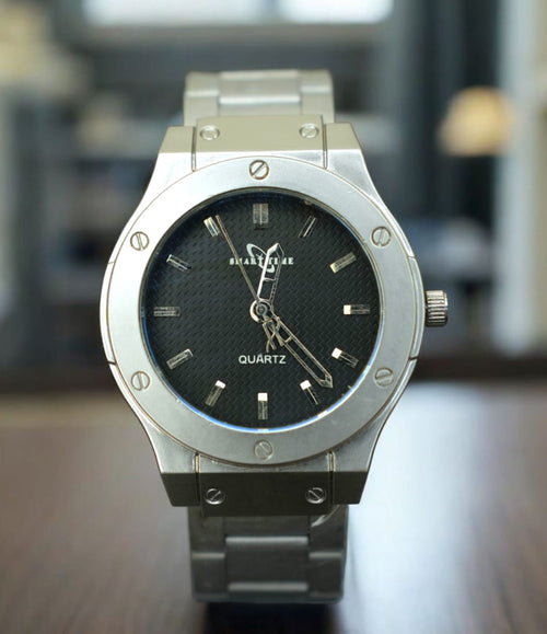 YW - Silver with Premium Black Dial Watch